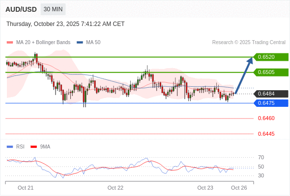 在 0.6475 之上,看涨,目标价位为 0.6505 ,然后为 0.6520 。