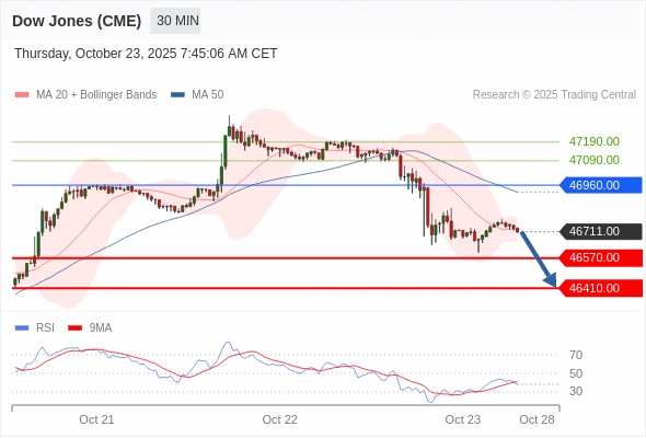 在 46960.00 之下,看跌,目标价位为 46570.00 ,然后为 46410.00 。