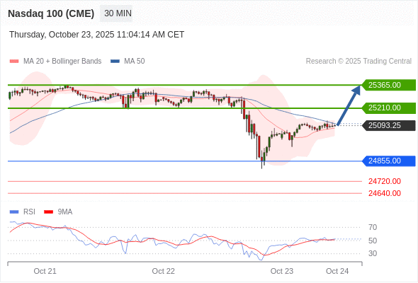 在 24855.00 之上,看涨,目标价位为 25210.00 ,然后为 25365.00 。