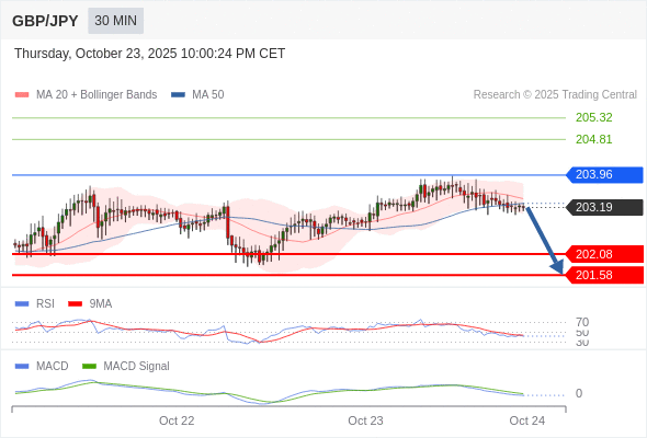 英镑/日元 当日内: 看跌,在 203.96 之下。