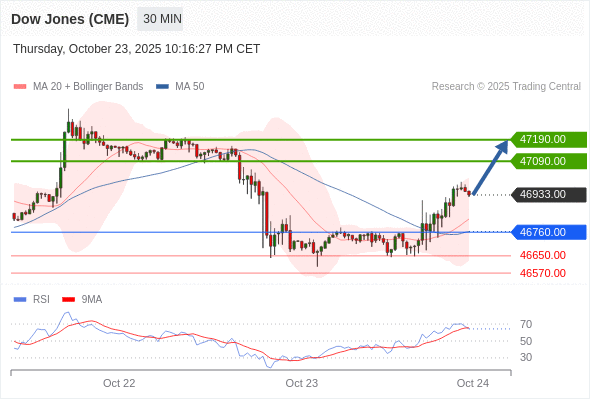 在 46760.00 之上,看涨,目标价位为 47090.00 ,然后为 47190.00 。