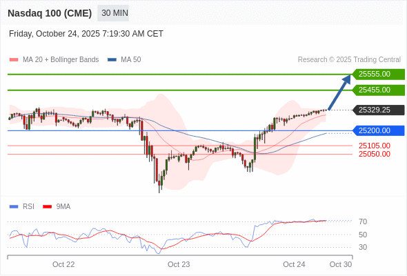 在 25200.00 之上,看涨,目标价位为 25455.00 ,然后为 25555.00 。