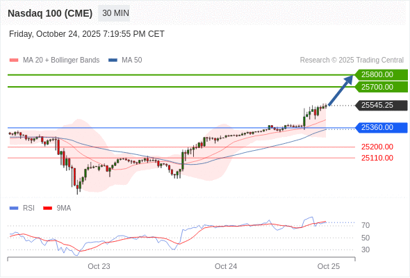 在 25360.00 之上,看涨,目标价位为 25700.00 ,然后为 25800.00 。