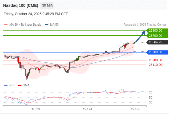 在 25360.00 之上,看涨,目标价位为 25700.00 ,然后为 25800.00 。