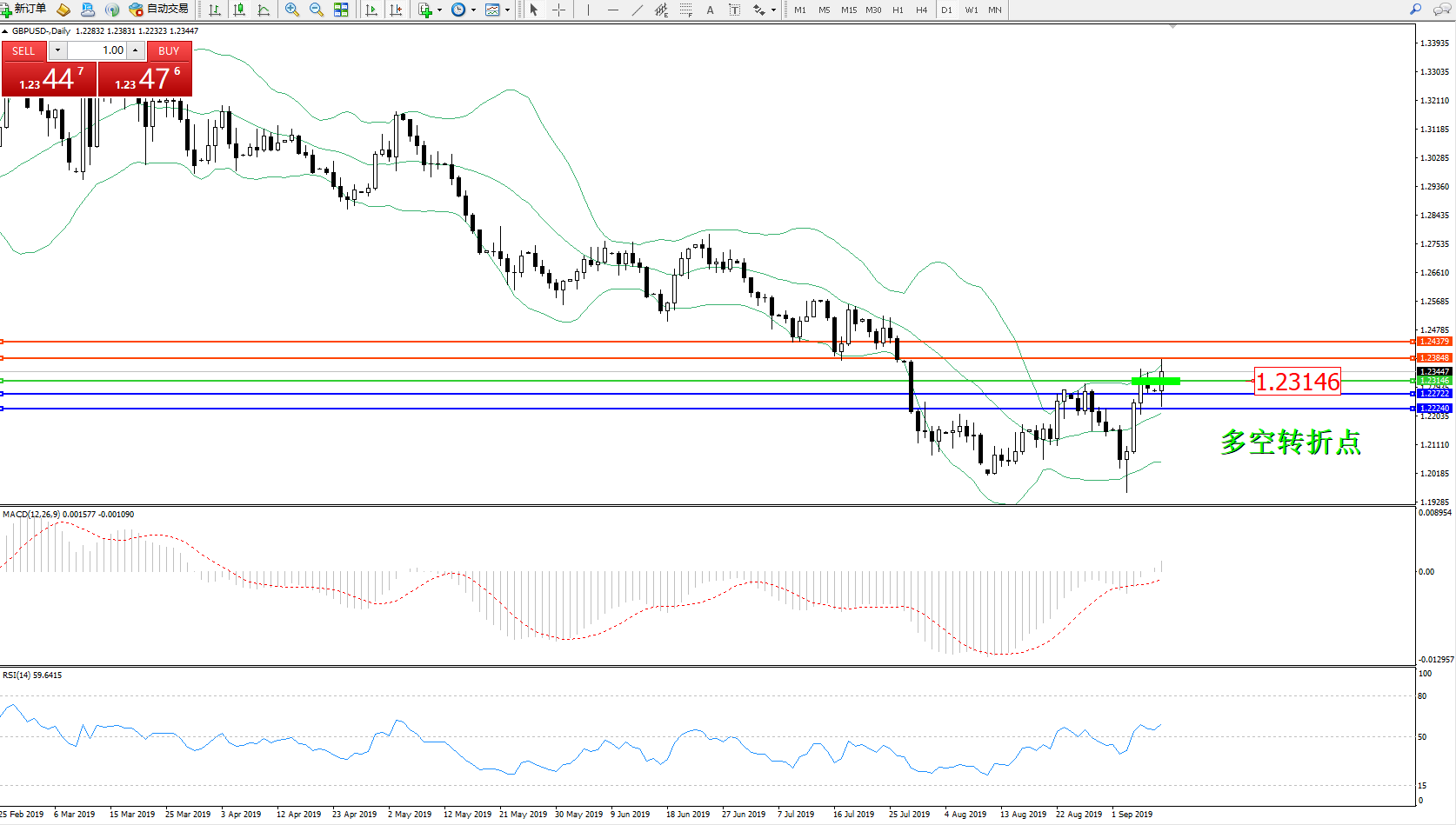 交易策略:1.23146上方看涨,目标1.23848、1.24379