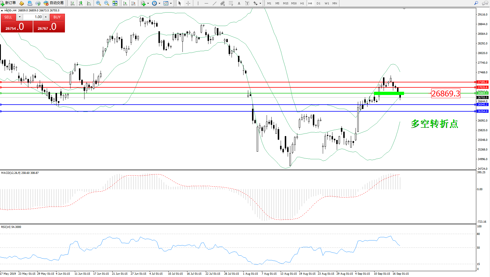 香港恒生指数917日(周二)收盘下跌334.31点,跌幅1.23%,报26790.24点。道指结束此前8连涨行情。港股早上跟随外围低开181点,直接跌穿27000关口。随后再扩大跌幅,恒指低见26822,受到外部因素的影响较低。随着市场逐渐消化这一事件的影响,后续走势也将趋稳,接下来的重点在明晚美国联储局公布议息结果。宏观环境向好仍会继续推动股市投资氛围。而且A股昨日跌幅不大,展示出对国际环境变化的良好抗性。此外,中国人民银行降准释放资金对后续股市走势形成支撑,整体投资氛围依然偏向乐观,港股或因此受益。