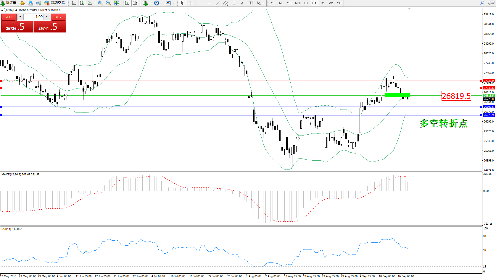 香港恒生指数9月18日(周三)收盘下跌36.12点,跌幅0.13%,报26754.12点;恒指微幅收跌;港股“三桶油”齐挫,体育用品股、华为概念股走高;瑞声科技收涨约10%,股价创近1个半月以来新高。隔夜美联储公布最新的9月利率决议,美联储如期降息25基点,利率调整至1.75-2.00%,符合预期。