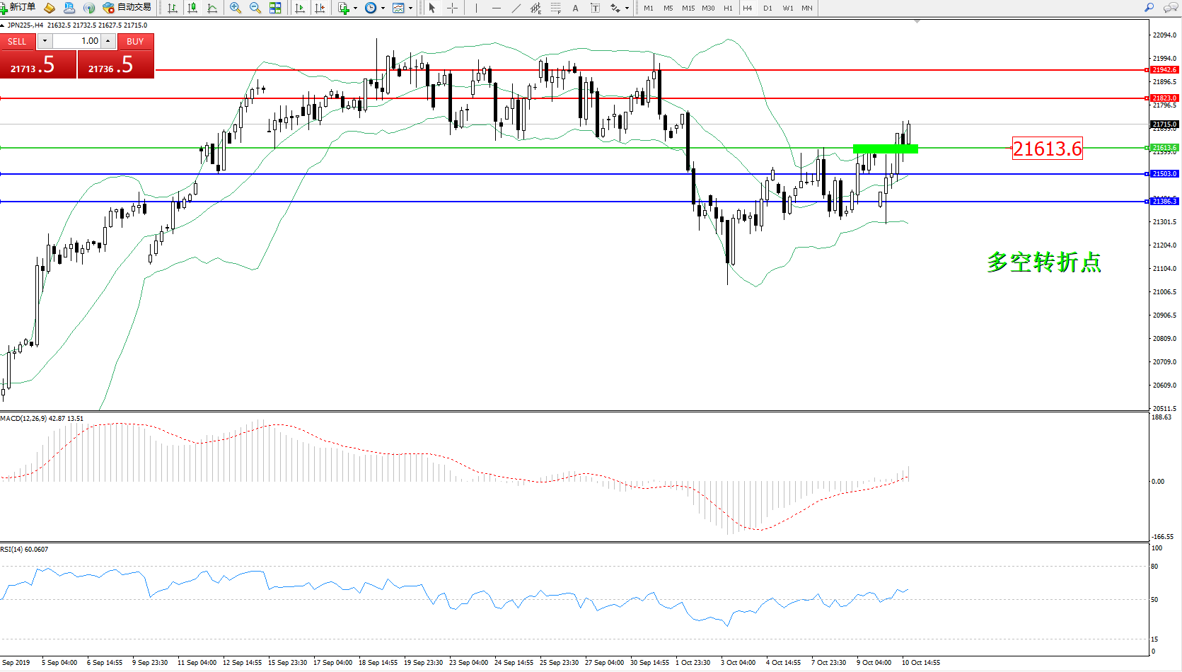 技术点评:多头动力缓慢震荡上行,延续布林带指标上轨弱势不断上探,正逐步触及前期震荡整理区域下轨附近压制,且布林带指标呈即将开口走势,MACD指标处于0轴线上方弱势徘徊上移中,RSI指标处于50均衡线上侧窄幅整理;
