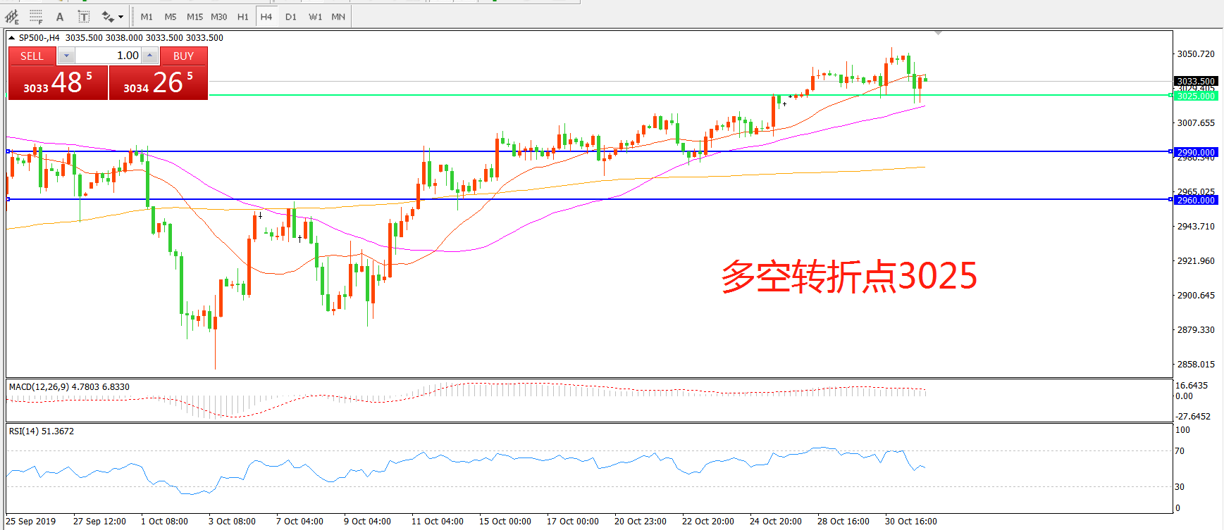 多空转折点:3025.00