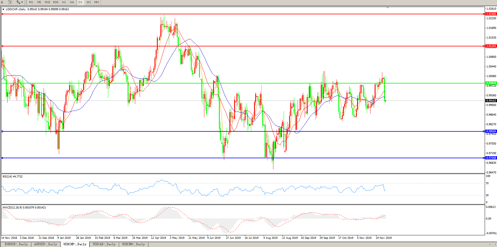 交易策略:0.9980下方看跌,目标0.9800、0.9700