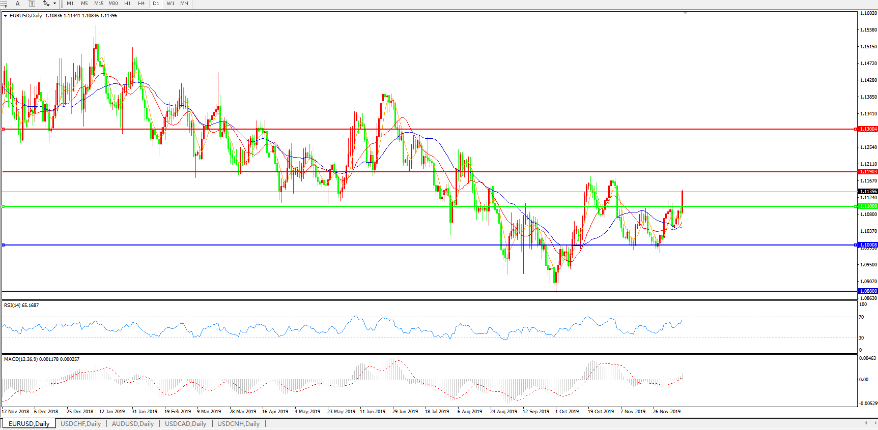 交易策略:1.1100上方看涨,目标1.1190、1.1300