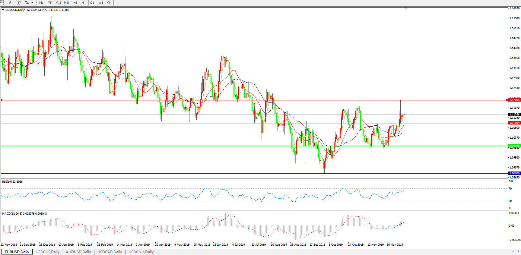 技术面简析:日图均线呈多头排列,汇价触及1.12后回落并持续承压,MACD穿越0轴且量能在0轴上方维持放量 ,RSI高位震荡,预计汇价将在整理后从新回归升势。