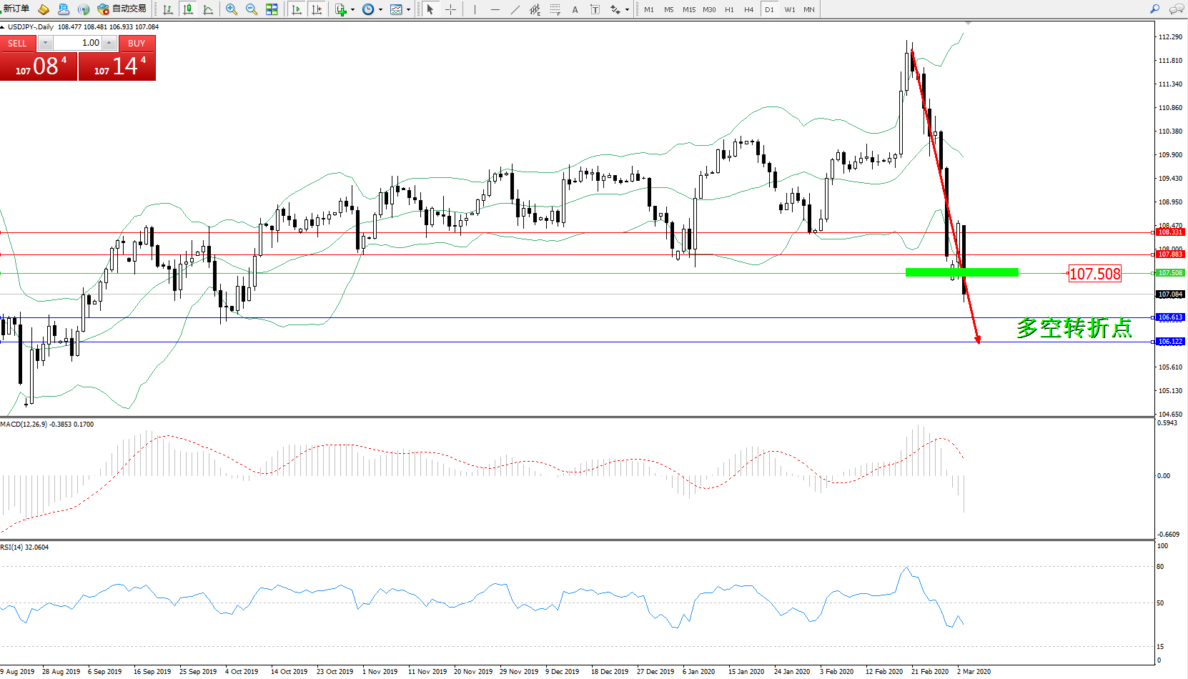 避险货币日元因投资者仍对公共卫生事件对经济的影响感到不安。美元兑日元下跌1.11%107.13;随着美国10年期国债收益率跌至纪录低点、股市下跌、信贷息差扩大,日元升至盘中高点。由于日本央行的基准利率为负0.10%,且负利率的副作用已经显现,所以日本央行的政策空间也颇为有限。与美联储不同的是,尽管市场猜测日本经济再次陷入衰退,但近日日本央行没有暗示会进一步刺激经济。相反,该行强调的是旨在确保市场稳定的措施,例如购买交易所交易基金和使用特殊债券操作。如果经济风险持续存在,日本央行可能加强与外界的沟通,以显示出更大的宽松偏好,或者在声明措辞中提及卫生事件带来的风险。最终,如果其他央行都降低利率,日元走强或日本经济崩溃,日本央行可能也不得不加入降息行列。不过在2008年全球金融危机期间,日本没有参与协同降息行动。