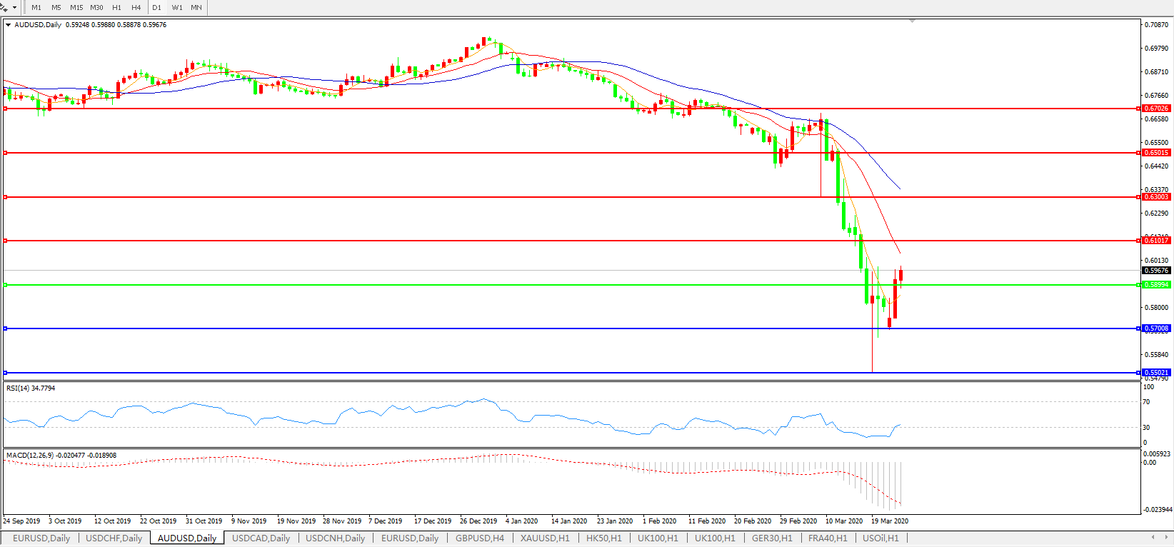交易策略:0.5900上方看涨,目标0.6100、0.6300、0.6500