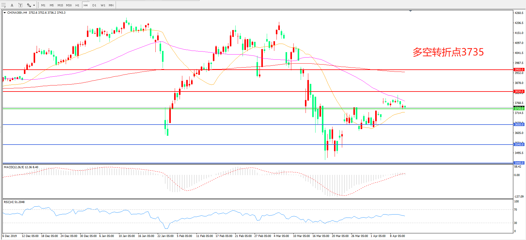4小时图看,沪深300维持窄幅震荡,整体波幅不大,短期均线拐头向上,MACD绿柱缩短,RSI指标走平,日内延续上行概率较大。