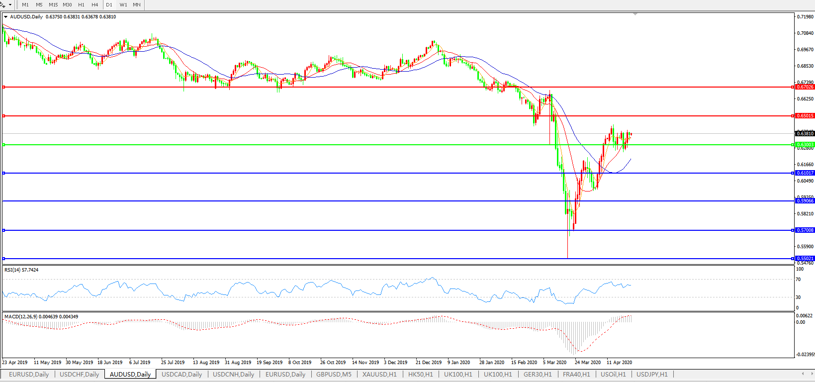 澳元兑美元AUDUSD 日线图: