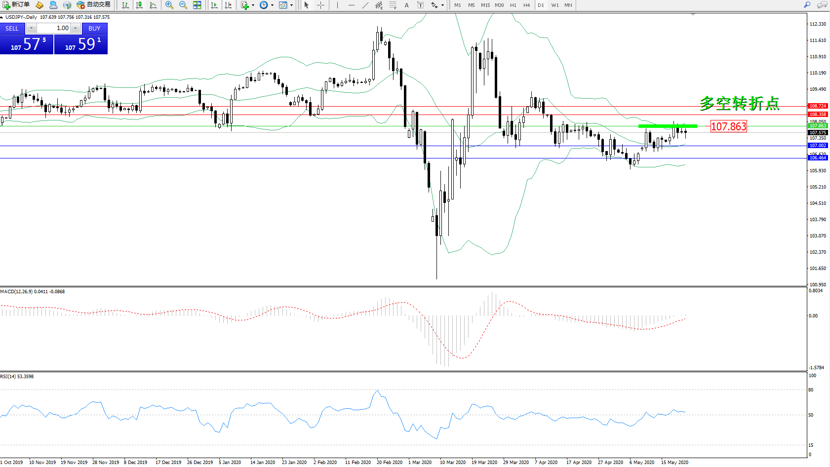 美元兑日元涨0.03%107.64,盘中一度下跌0.3%107.32;日本央行在紧急会议上维持收益率目标和资产购买计划不变;日本央行启动新贷款计划,在疫情期间支持小企业。美元兑日元困于一目均衡图上的云区,但日元看涨期权涌现新的兴趣。日本财长、央行行长联合声明:政府和央行将紧密合作,支持经济活动,采取大胆的措施来保证市场稳定,将通力合作,保证使日本经济重回稳健增长轨道,政府和日本央行承诺尽一切努力促进企业融资,保持市场稳定,政府正在制定第二份额外预算,其中包括采取措施向受疫情影响的公司注资,政府和日本央行将密切沟通以避免通货紧缩,努力实现物价的适度上涨。
