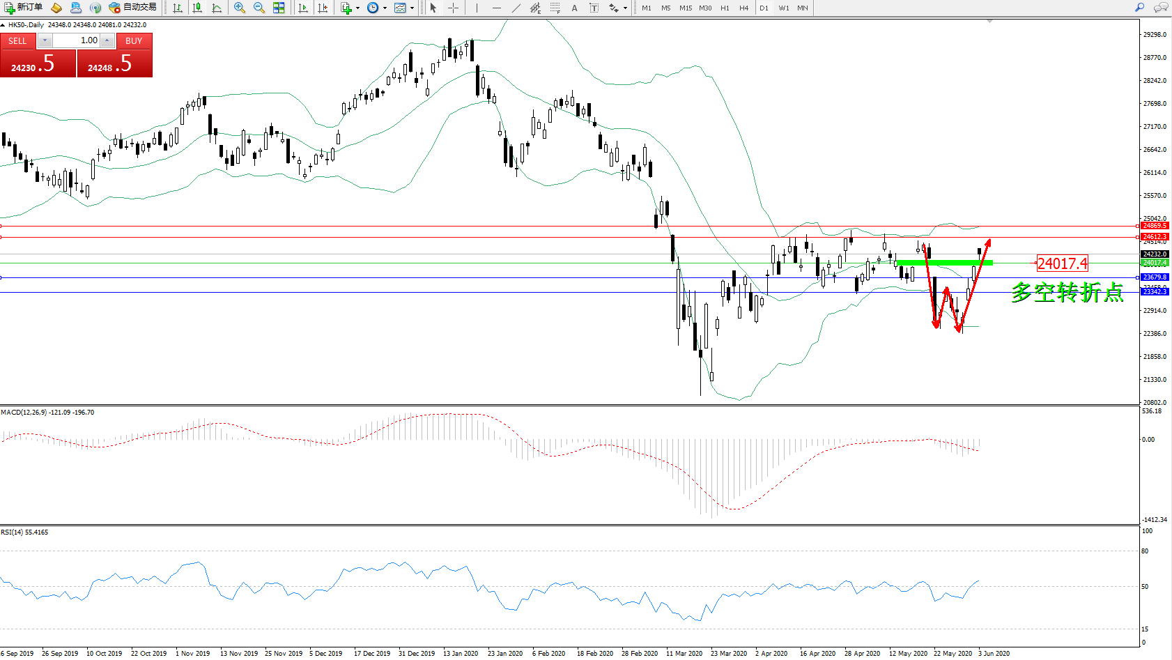 香港恒生指数6月3日(周三)收盘上涨329.68点,涨幅1.37%,报24325.62点;港股三大指数均收涨,恒指连续3日高开走强,大市成交额为1394.53亿港元,南下资金净流入21.79亿港元。石油股、影视娱乐、啤酒股、节假日概念股涨幅居前,美团再升超5%续创新高;黄金股与教育股跌幅明显。地摊经济席卷港股,五菱汽车推出翼开启售货车,盘中直线暴涨至120%,五菱汽车暴涨源于五菱荣光推出翼开启售货车助推“地摊经济”。需要注意的是,五菱荣光的生产商是上汽通用五菱(由上汽集团、美国通用汽车和广西汽车集团三方组建的中外合资公司),而港股五菱汽车的主要业务为于中国从事汽车发动机、配件及专用汽车的制造及销售业务。五菱汽车(0305.HK)是上汽通用五菱的最大供应商,为其提供约80%的各类零部件及发动机等主要汽车组装部件。