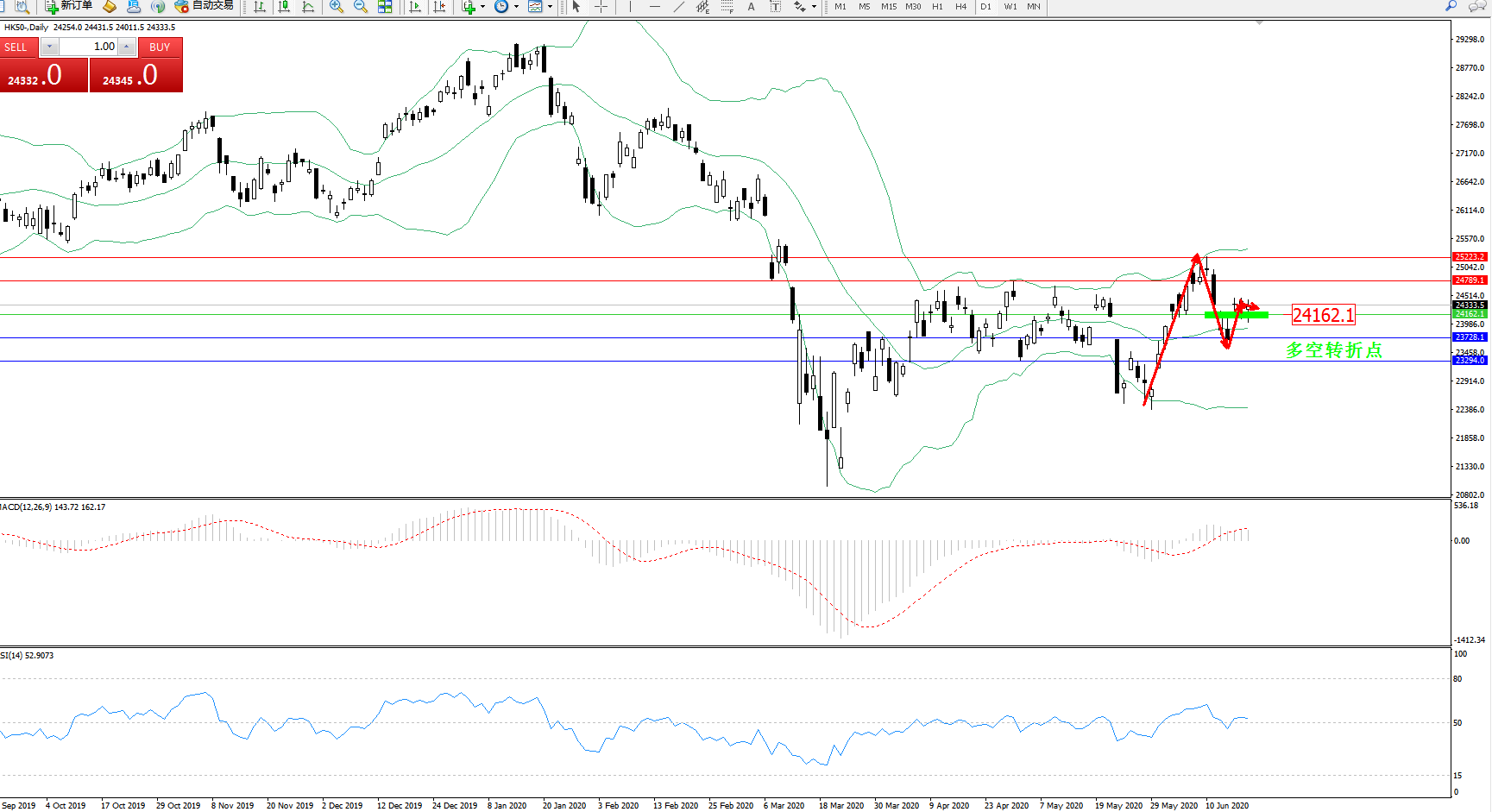 香港恒生指数6月18日(周四)收盘下跌16.47点,跌幅0.07%,报24464.94点;盘初急挫逾300点,随后逐渐回升,全天维持窄幅震荡。港股中兴通讯股价暴涨,具备芯片设计和开发能力,7nm芯片已经规模量产,并在全球5G规模部署中实现商用,5nm芯片则正在技术导入。京东集团在港上市首日涨3.54%。京东正式登陆港股!市值高达7300亿!港股延续近期强势,并沿上升通道挺进,但上方压力开始浮现,由于累积较大获利需求,短线大盘或需进行休整,但预计行情整固过后,港股仍将延续上行趋势,投资者可根据自身仓位适度调整持仓水平。