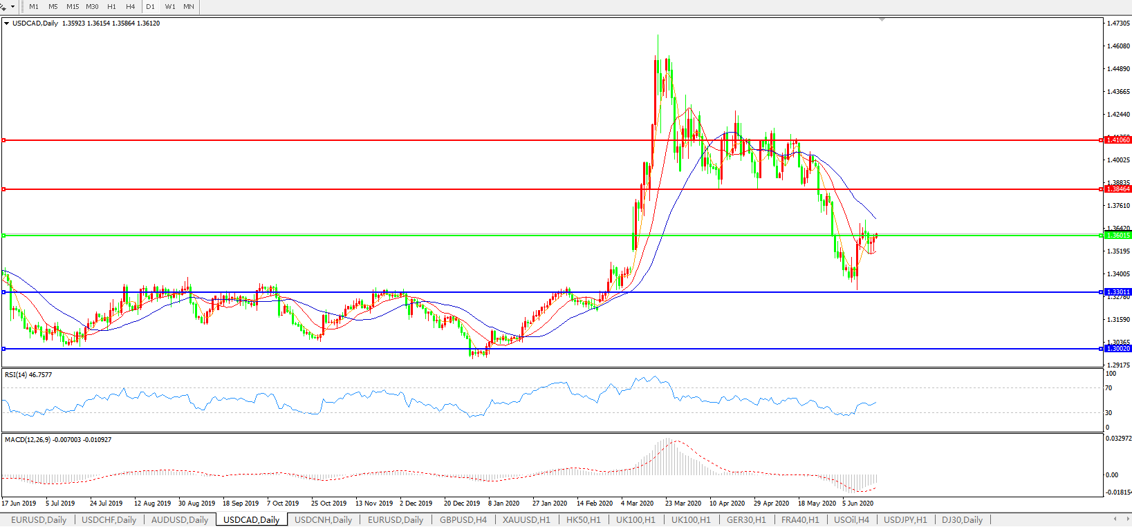 交易策略:在1.3600之下,看跌,目标价位为1.3300、1.3000