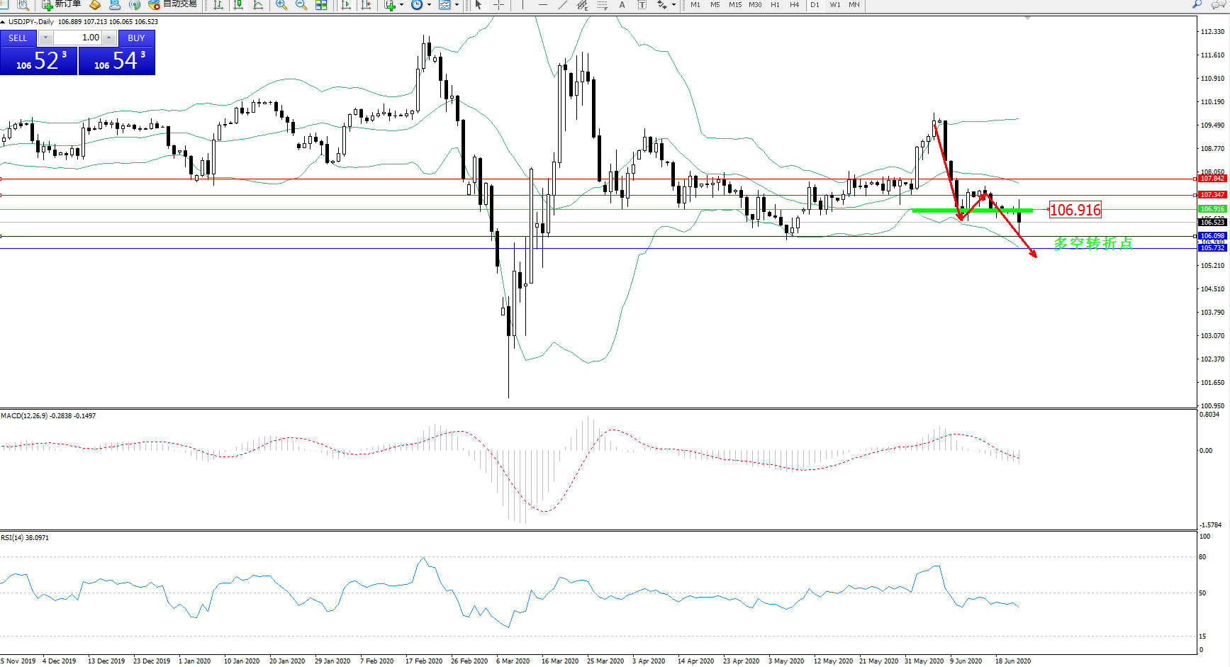 美元兑日元下跌0.36%106.52,一度触及六周低点106.07;汇率触发了在106.45/50下方的止损;关键支撑位在56日低点105.99;一位纽约交易员表示,期货市场上大约6亿美元的交易在一分钟之内成交;美元指数继续回落,且二次疫情风险不减,美元指数跌至一周新低,而市场风险偏好情绪也起伏不定,整个市场还是受到避险需求的影响,而后市各国央行还可能会进一步刺激,以应对疫情,这对日圆是一大支撑,近期美国疫情有升温之势,外加巴西等国的疫情发展,令市场非常担忧。除了二次疫情愈演愈烈,日元并无太明显的避险需求,此外全球股票市场依旧备受青睐,这使得日元近期并无明显趋势性上涨行情。