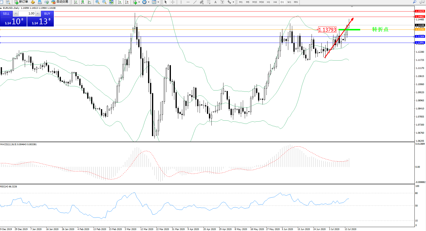 交易策略:1.13793上方看涨,目标1.14662、1.15029