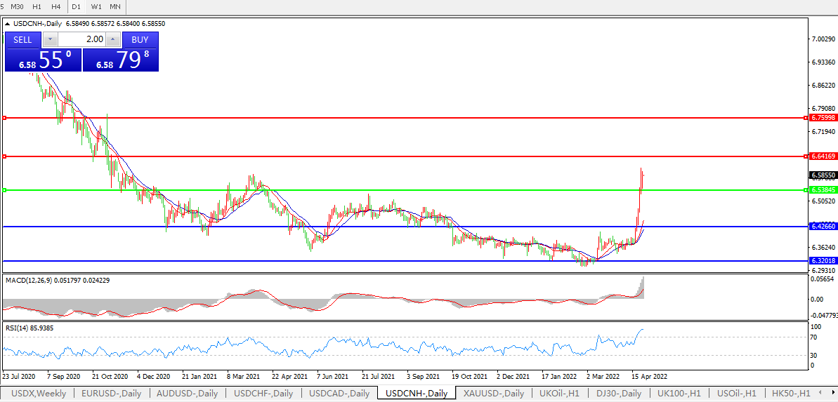 技术面简析:日图均线多头排列,汇价加速上行,MACD运行于0轴上且量能小幅放量,RSI走升,预计短期汇价大概率将进一步上行。