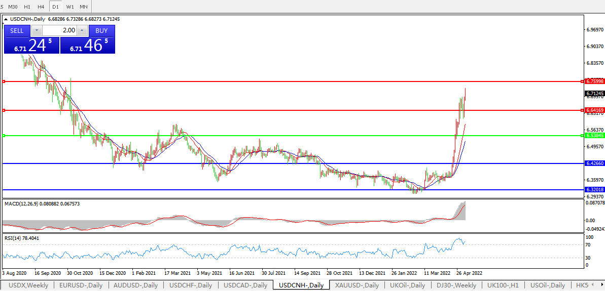 技术面简析:日图均线多头排列,汇价再度上行,MACD运行于0轴上且量能小幅放量,RSI走升,预计短期汇价大概率将进一步上行。