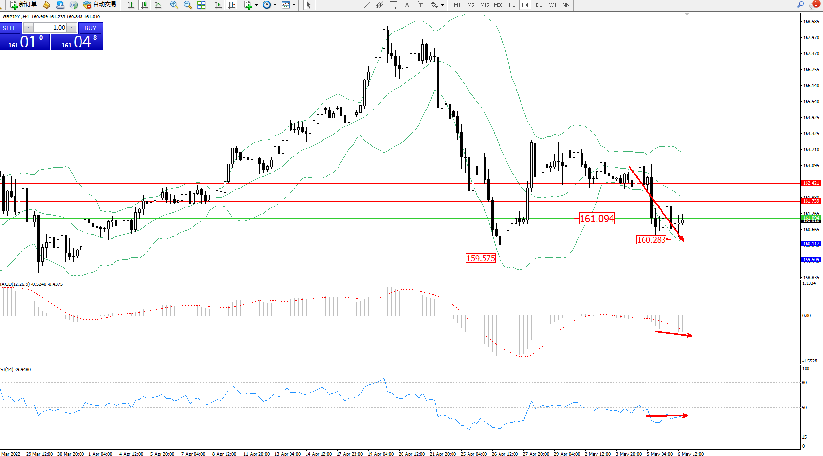 技术点评:空头动力延续布林带指标通道下轨附近持续震荡下行,低位抵达160.283附近节点后窄幅震荡,短期空头动力有继续下行态势,布林带指标呈缓慢张口走势后开始收口下行,MACD指标处于0轴线下方空头区域维持整理,RSI指标处于50均衡线下侧维持弱势徘徊中;