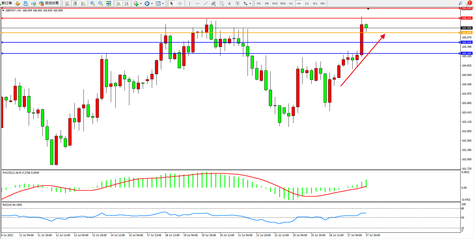 交易策略:165.806上方看涨,目标166.241、166.540