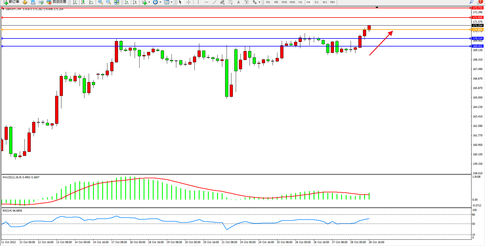 英镑兑日圆维持171.254附近震荡,英国央行11月1日还将启动主动量化紧缩进程。英国央行副总裁康利夫表示,金融市场走势未来几周可能仍然波动,但英国国债再次出现“大甩卖”的风险已经大大降低。
