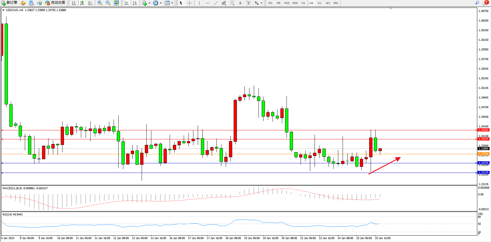 美元兑加元维持1.33880附近震荡,加拿大至1月25日央行利率决定 4.5%,预期4.50%,前值4.25%。符合市场预期,为2007年10月以来最高利率水平。加拿大央行预计在评估加息影响期间维持利率不变。