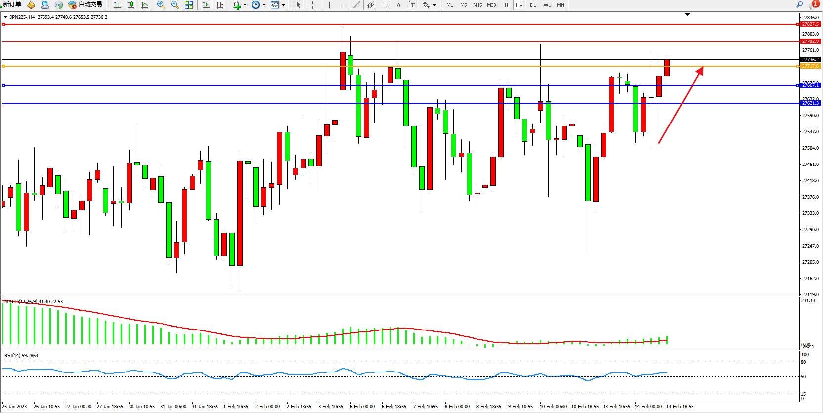 日经225指数2月14日(周二)收盘上涨188.18点,涨幅0.69%,报27615.50点。日本外相林芳正称,在为纪念与东盟(ASEAN)友好合作50周年而于12月在东京召开的特别首脑会议上,将共同宣布下一个50年的合作愿景。