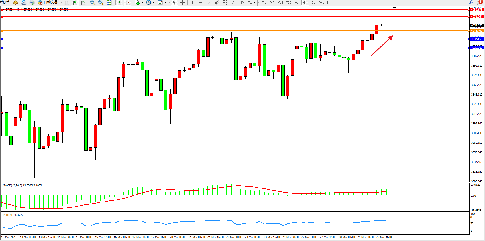 交易策略:4048上方看涨,目标4071  4082