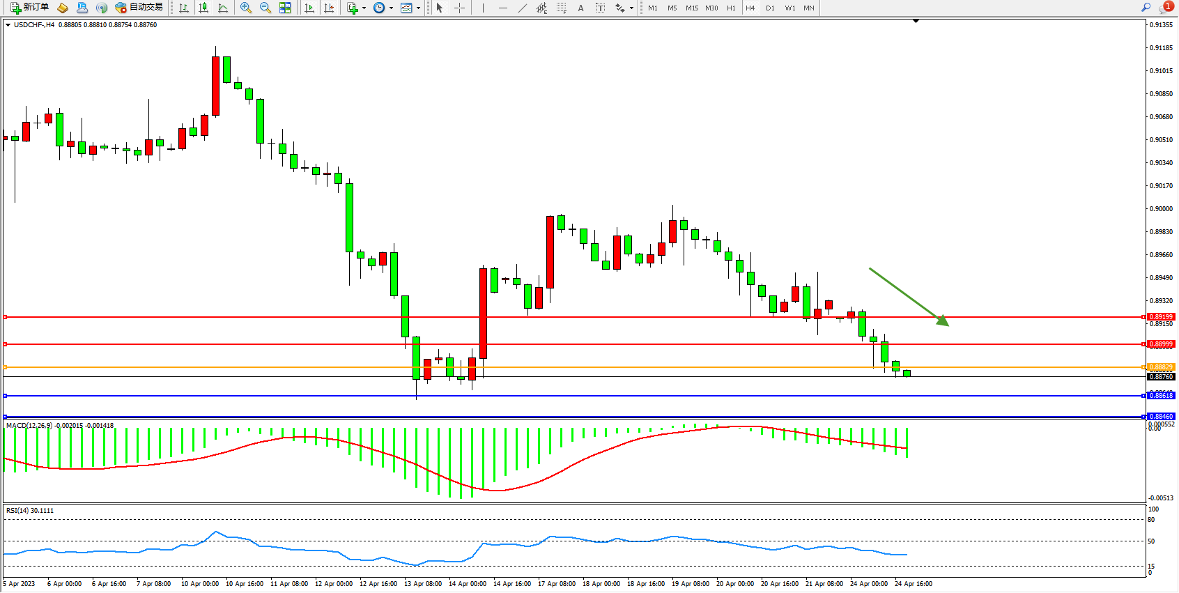 交易策略:0.88629下方看跌,目标0.88618 0.88460