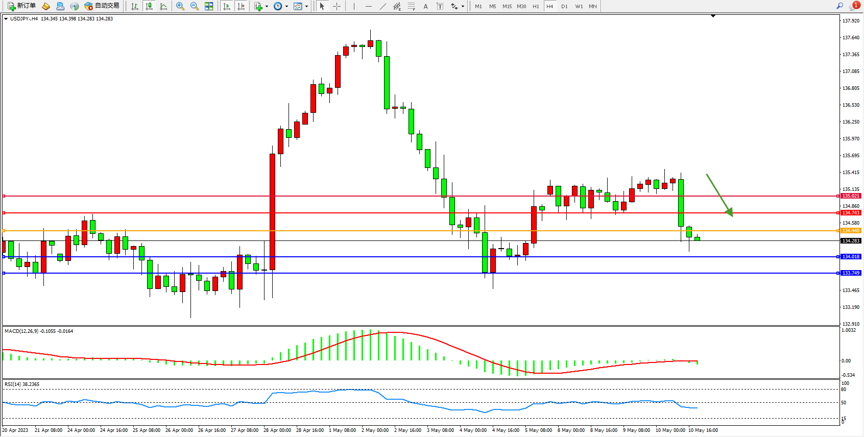 交易策略:134.448下方看跌,目标134.018  133.749