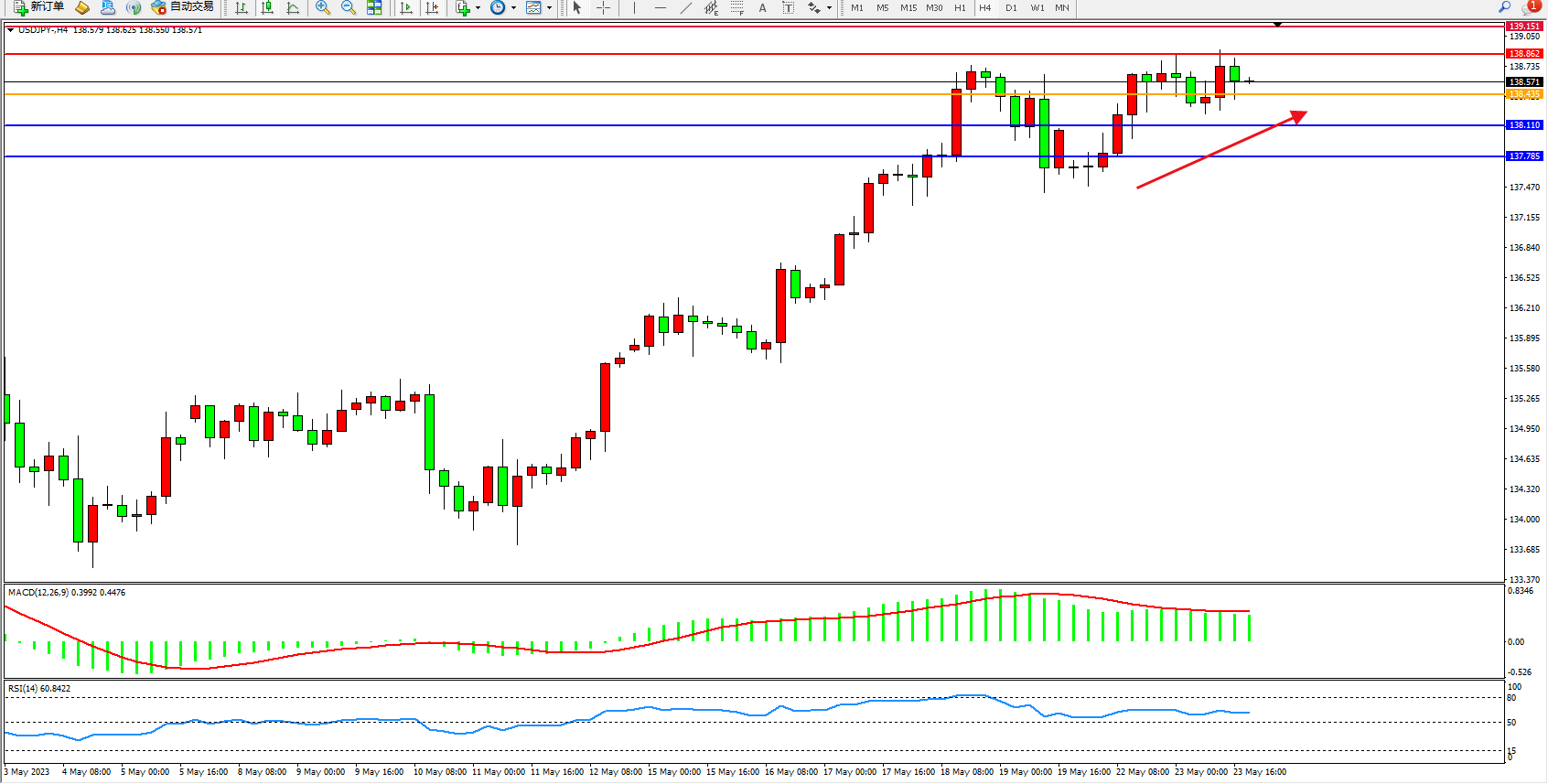 美元兑日圆维持138.571附近震荡,美元兑日圆在亚洲盘升至138.87的近六个月高点,目前交投于138.77附近,这反映出仍然鹰派的美联储和超鸽派的日本央行之间的鲜明对比。
