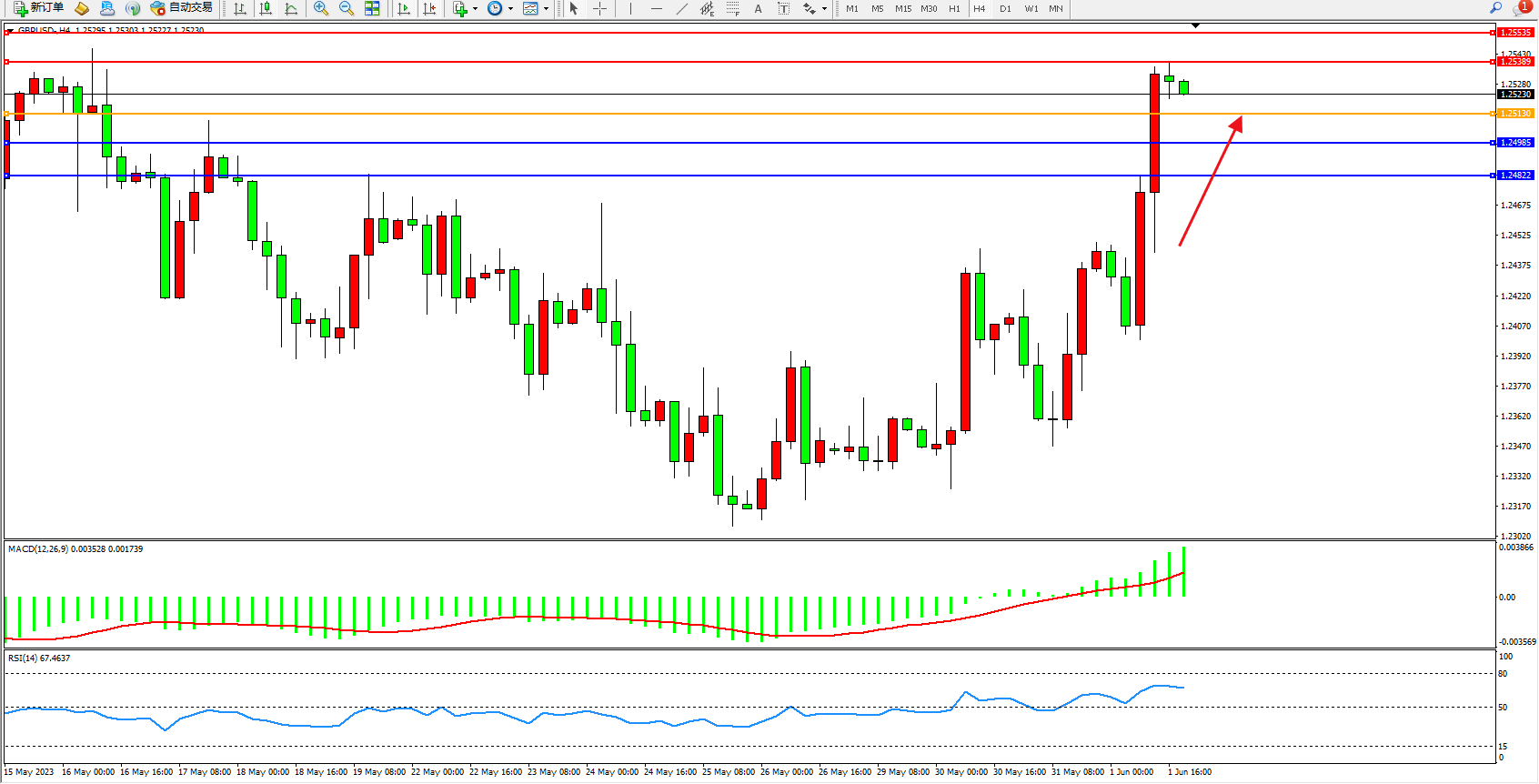 英镑兑美元维持1.25230附近震荡,英国核心通胀率的上升增加了英国央行进一步加息的可能性,市场预计英国央行今年至少还会加息25个基点,使基准利率升至4.75%。