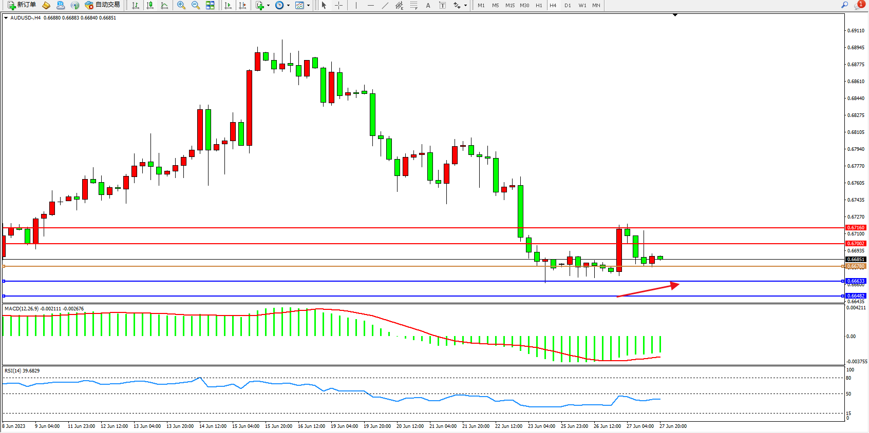 交易策略:0.66780上方看涨,目标0.67002 0.67160