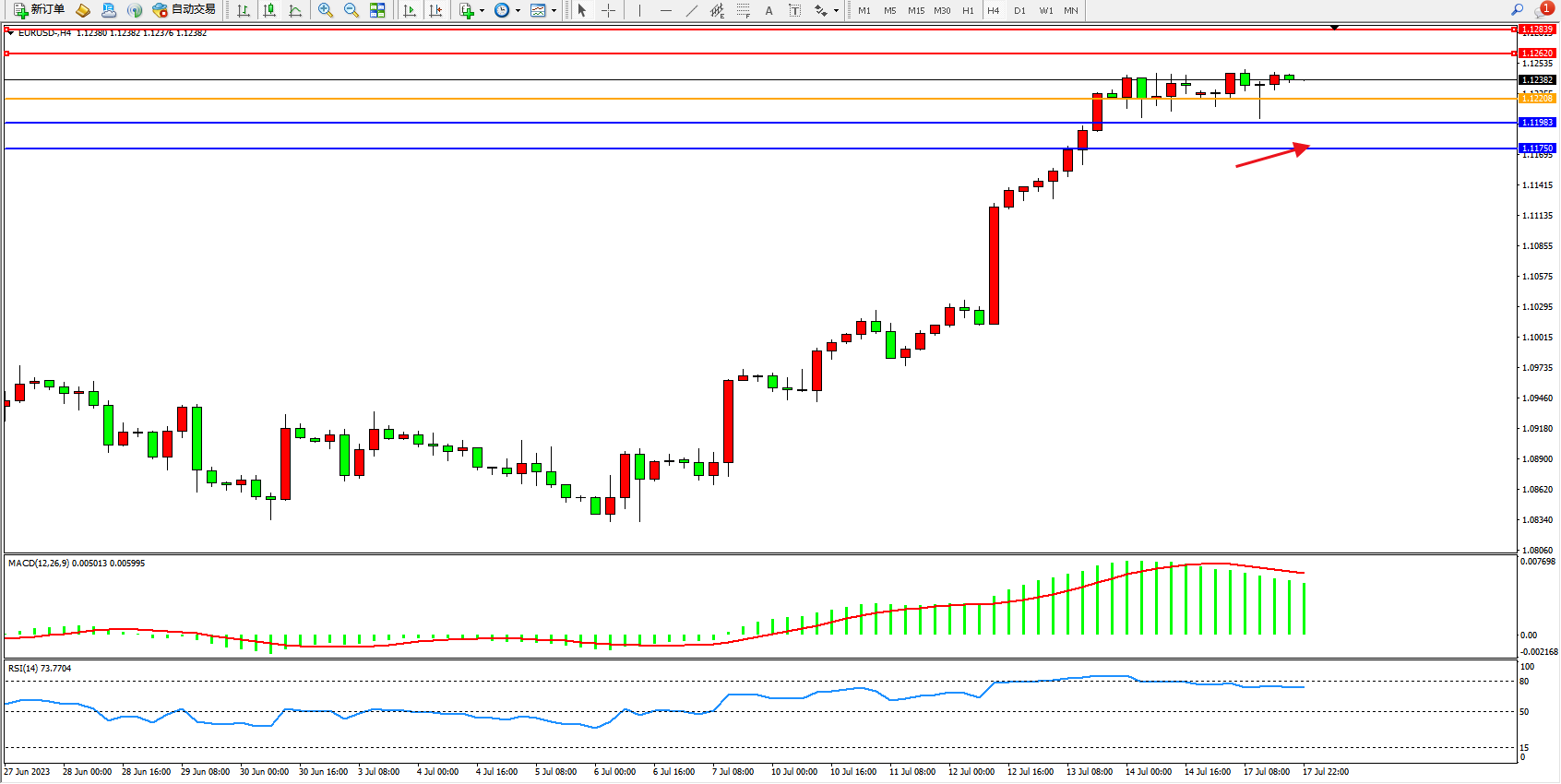 欧元兑美元维持1.12381附近震荡,调查显示,欧洲央行9月份将把借贷成本提高到4%的峰值水平。由于通胀难以缓解,经济学家越来越持鹰派态度。