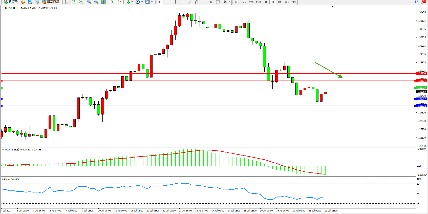 交易策略:1.28717下方看跌,目标1.28317 1.28072