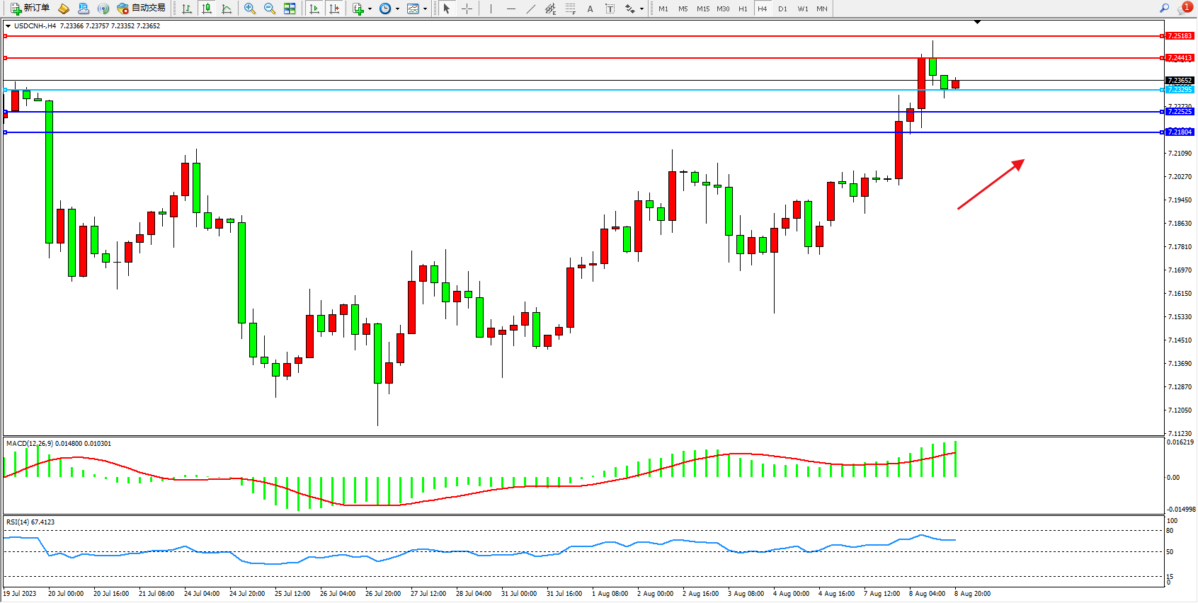 备选策略:7.23295下方看跌,目标7.22525  7.21804