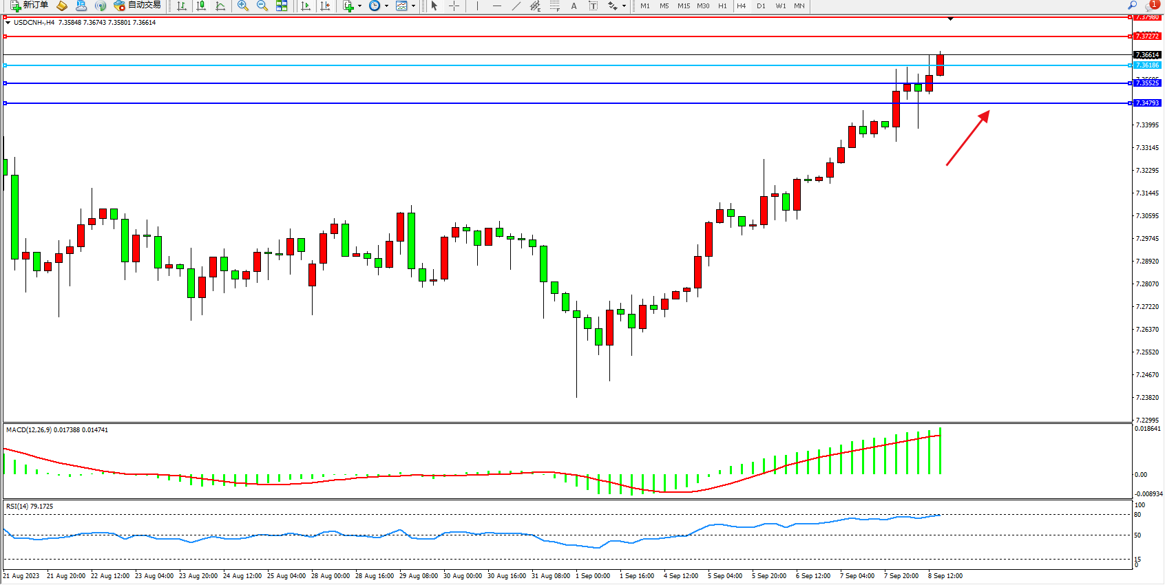 交易策略:7.36186上方看涨,目标7.37272  7.37980