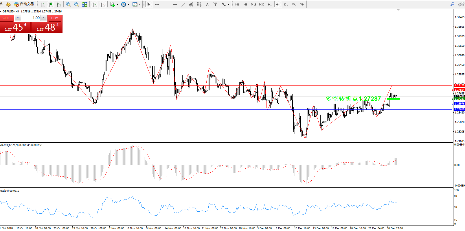 交易策略:1.27287上方看涨,目标1.27854、1.28129