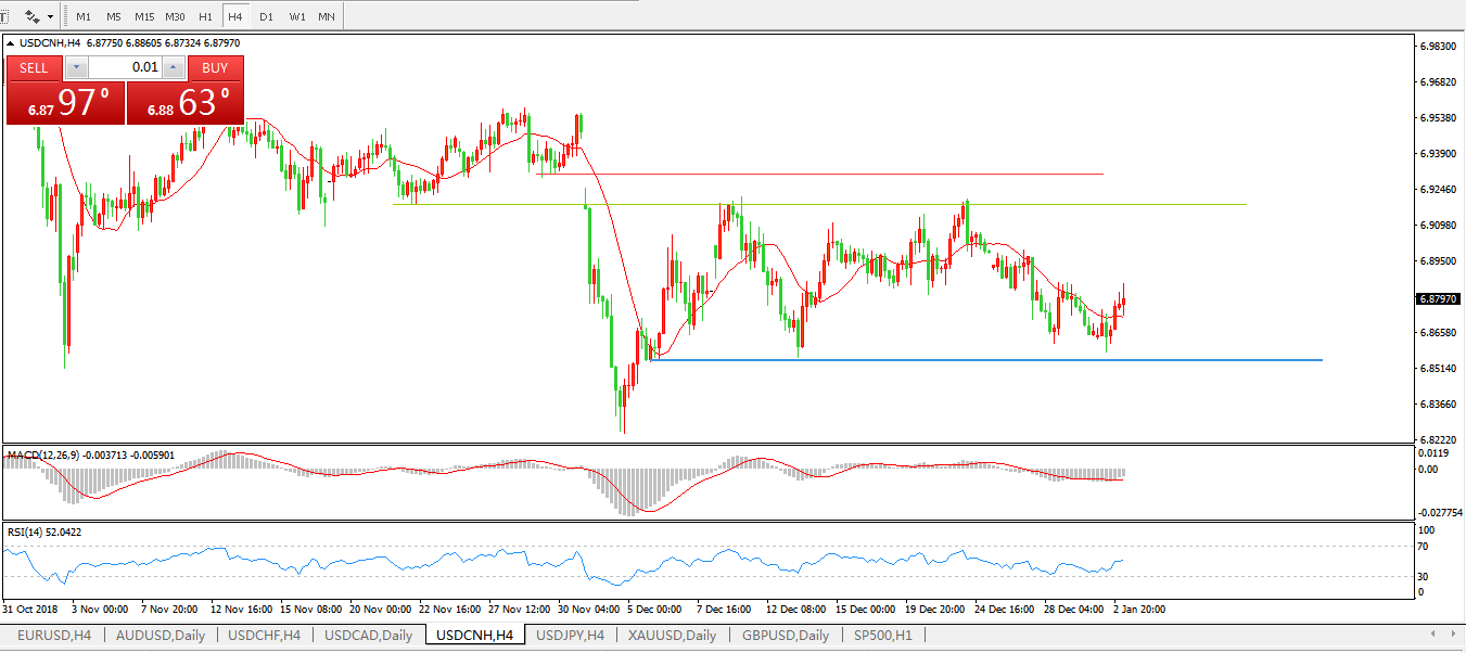 美元兑人民币USDCNH4小时图: