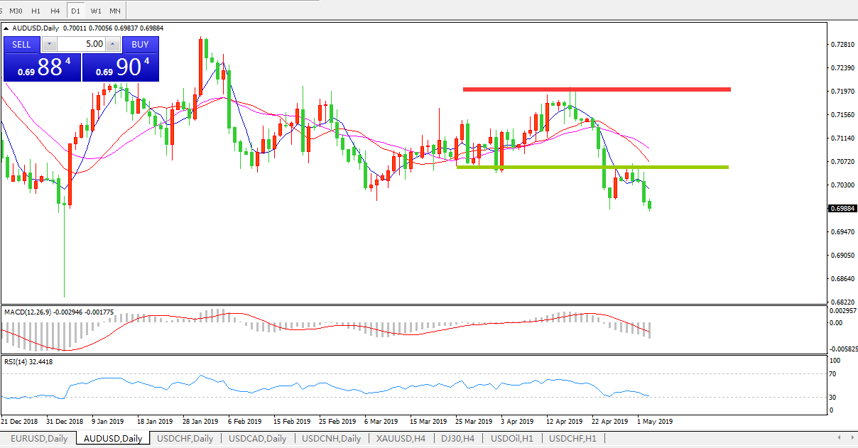 澳洲联邦银行:澳元兑美元下跌,因油价下滑; 美盘阶段,澳元兑美元技术性收低于0.7000,这是一个看空信号,且有可能进一步下跌; 该货币对下跌的主要原因是油价下跌和美元坚挺;美国原油库存升至两年来的最高水平,原油价格下跌2.8%至一个月以来的最低水平;俄罗斯原油去库存目标不及预期,美国对伊朗石油出口的制裁措施缺乏信心,威胁委内瑞拉石油供应的政治风险似乎已经消退。