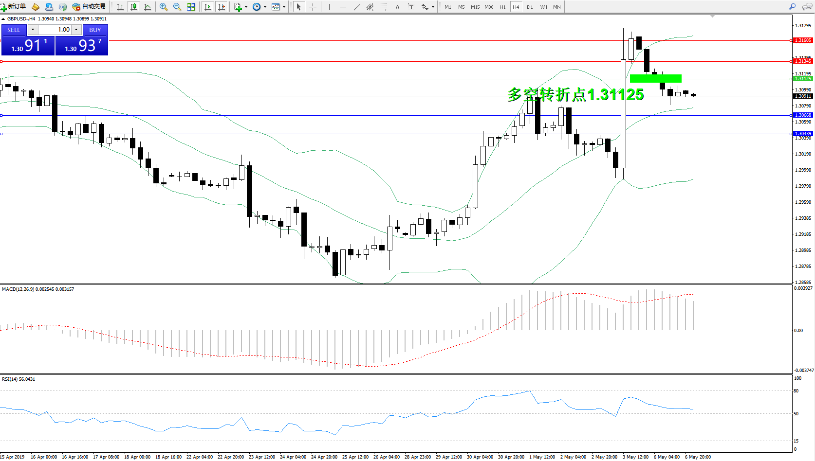 交易策略:1.31125下方看跌,目标1.30668、1.30439