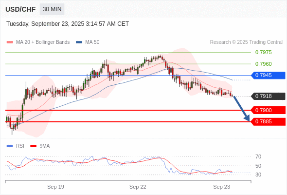 在 0.7945 之下,看跌,目标价位为 0.7900 ,然后为 0.7885 。