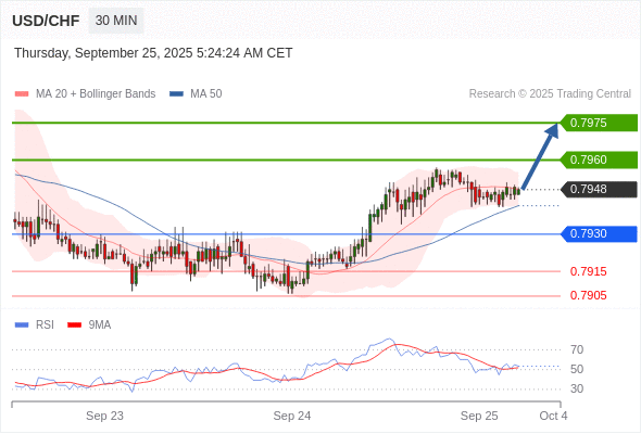 在 0.7930 之上,看涨,目标价位为 0.7960 ,然后为 0.7975 。