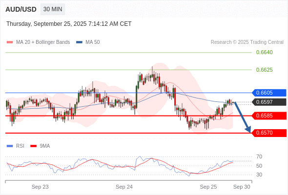 在 0.6605 之下,看跌,目标价位为 0.6585 ,然后为 0.6570 。